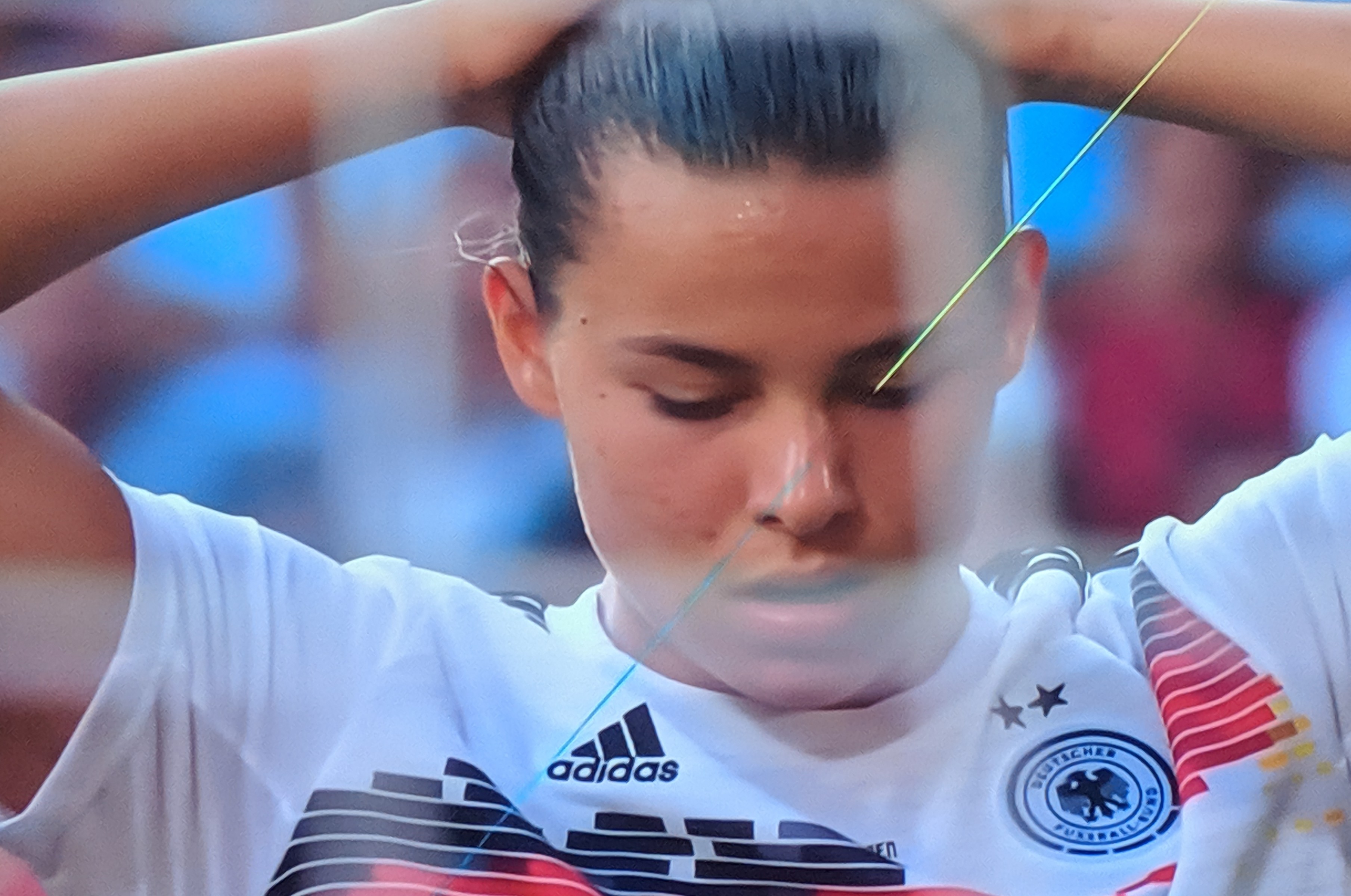The 16th minute brought Germany it’s first goal!E gave The ball away, Dräbitz jumped on it, made a run to the middle of the field, sent in the ball to an Onside Magull who shot it straight to her left!