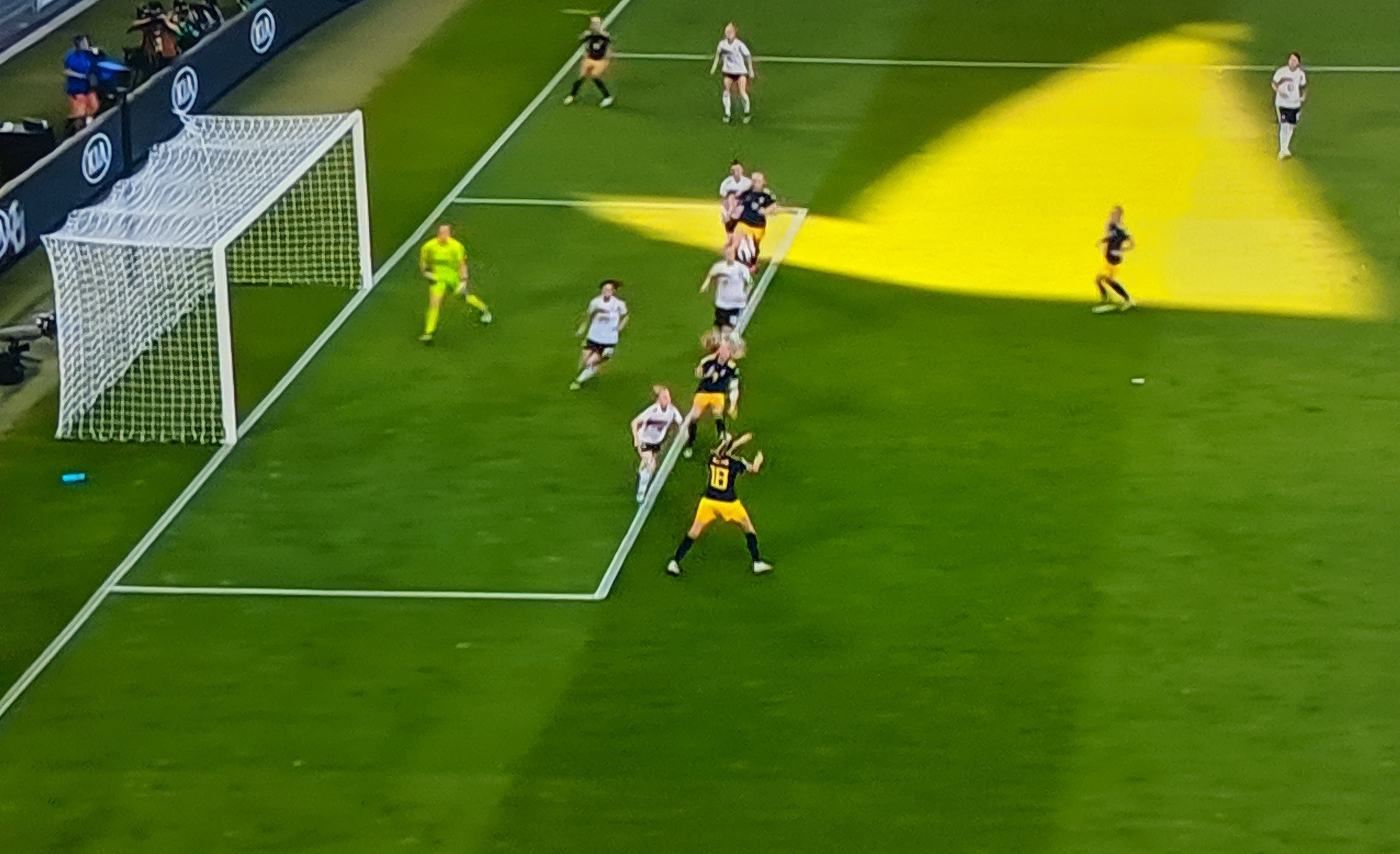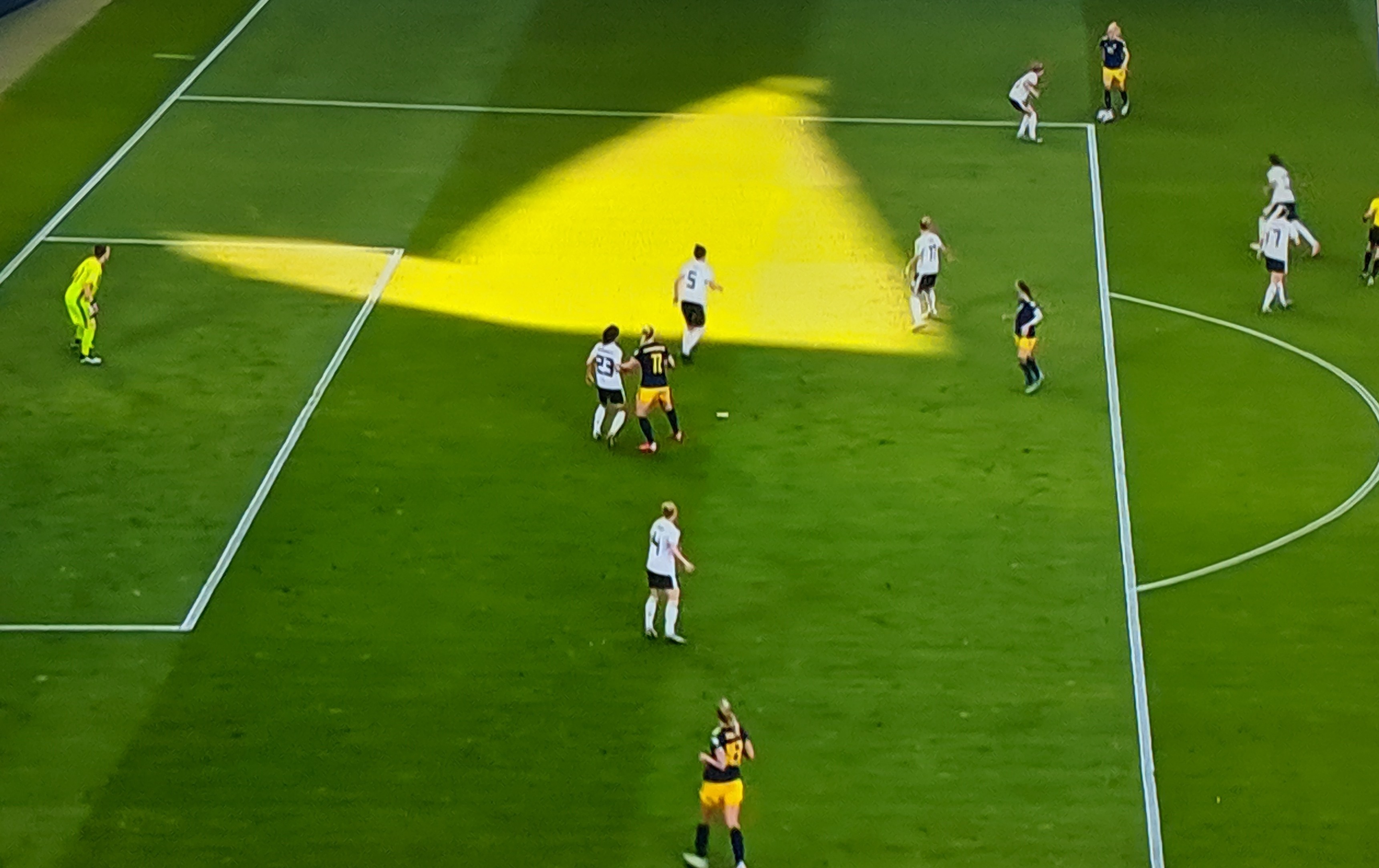 The Germans were pushing right from the start. A one-on-one moment between Lindahl and Magull on the flank made it evident! The GK cleared the ball for outside.