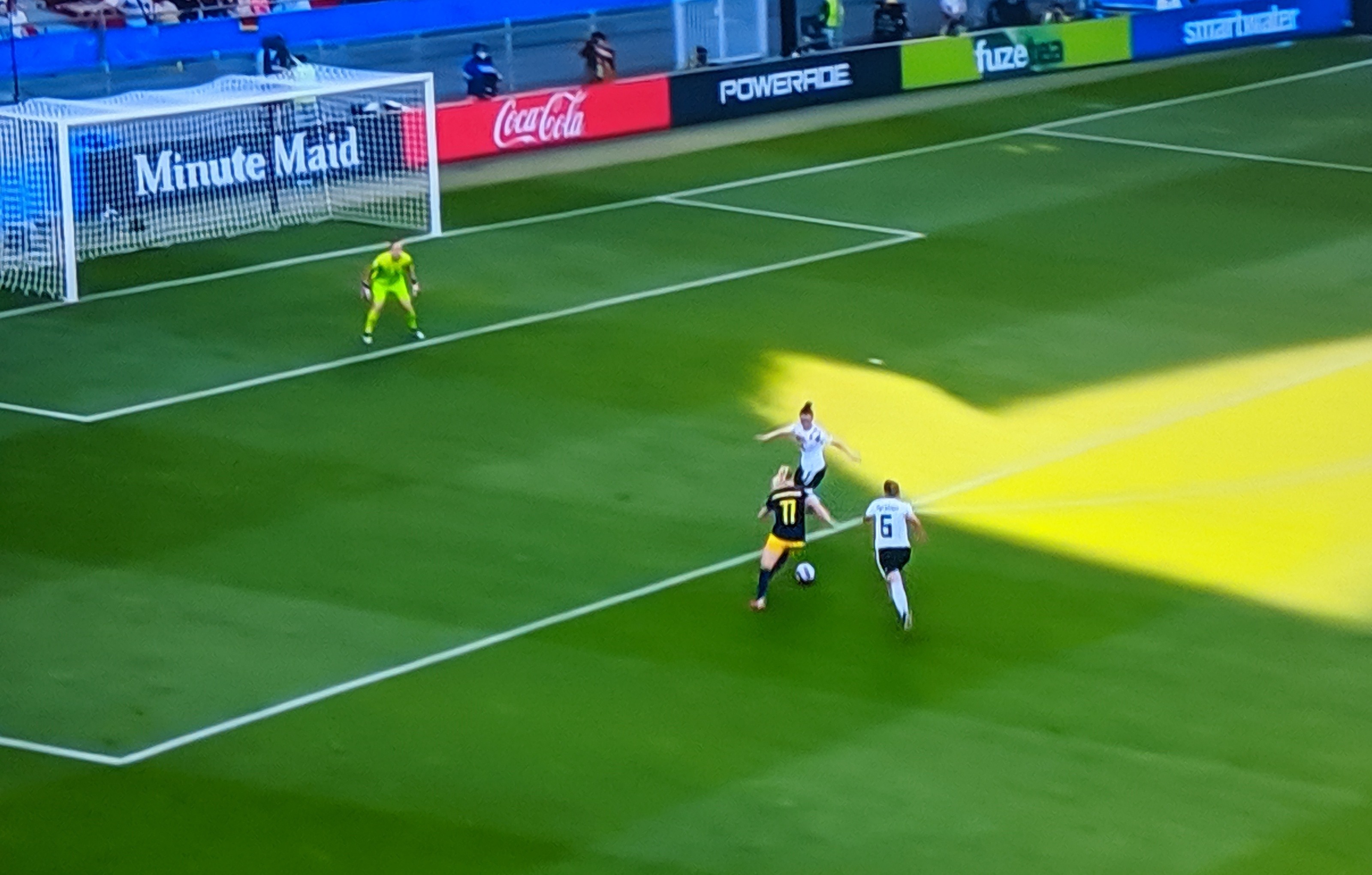 Just before the Cooling Break (France touched a record 45 degrees Celsius!) in the 32nd minute, Blackstenius made a run along the right flank, quite dangerously unmarked by the German defense, tossed it around a bit and then stopped for a bit of coolin’!