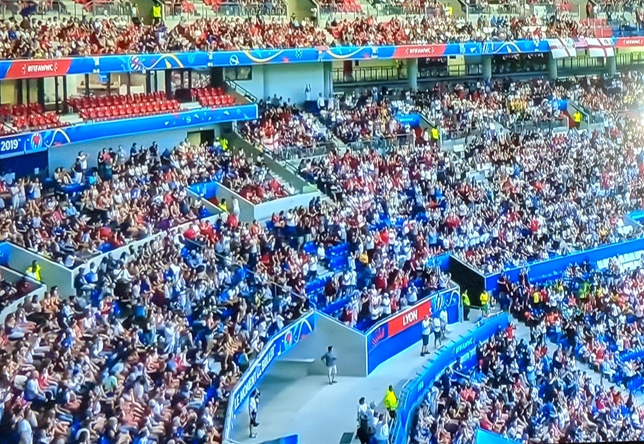 England and USA kicked off their Semifinal in front of massive crowds. The former donned their usual White, while the Americans were painted Red! England looked to better it’s 2015 result and go ahead from the Semifinal stage, instead of repeating a battle for the 3rd Place, while the Americans looked to keep up their run (after some Moral Policing by Mr. Neville. I found it justified, personally!)