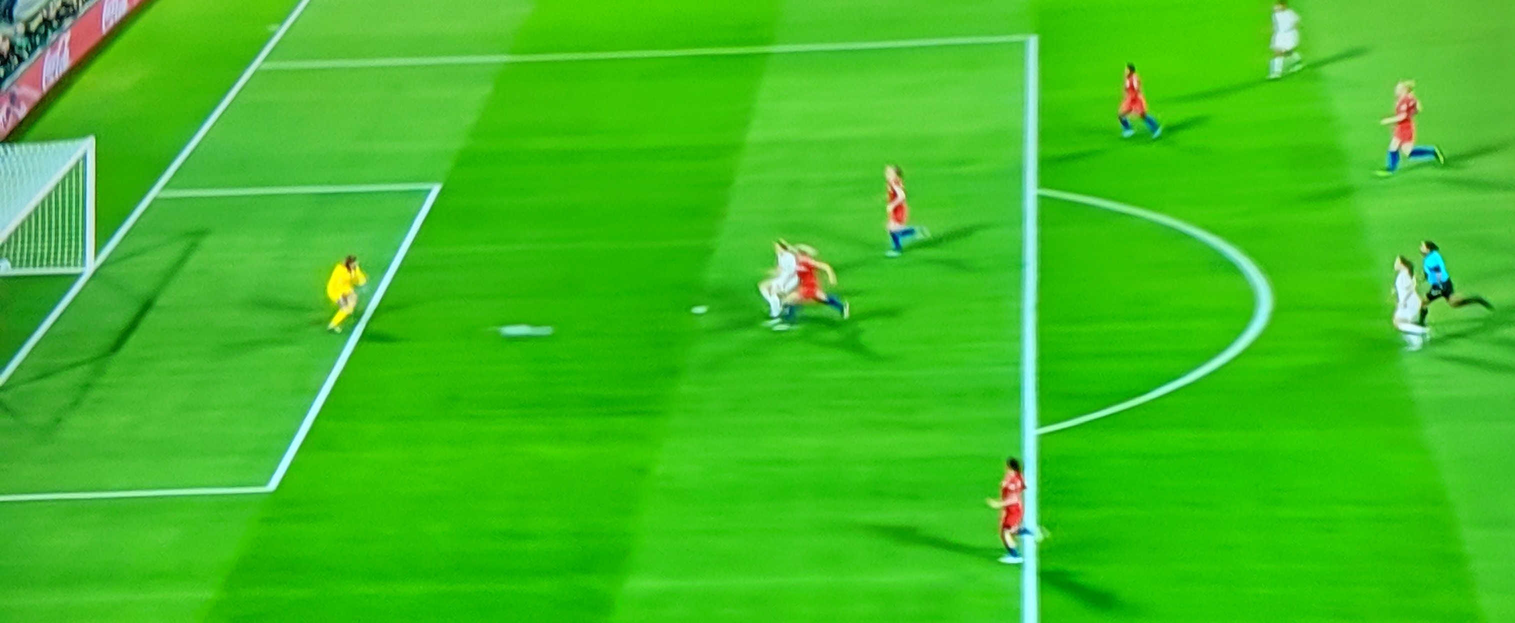 In the 22nd minute, England’s No. 7 Parris made a run, Daly got the ball and passed it in, White got to it, but was steered off.