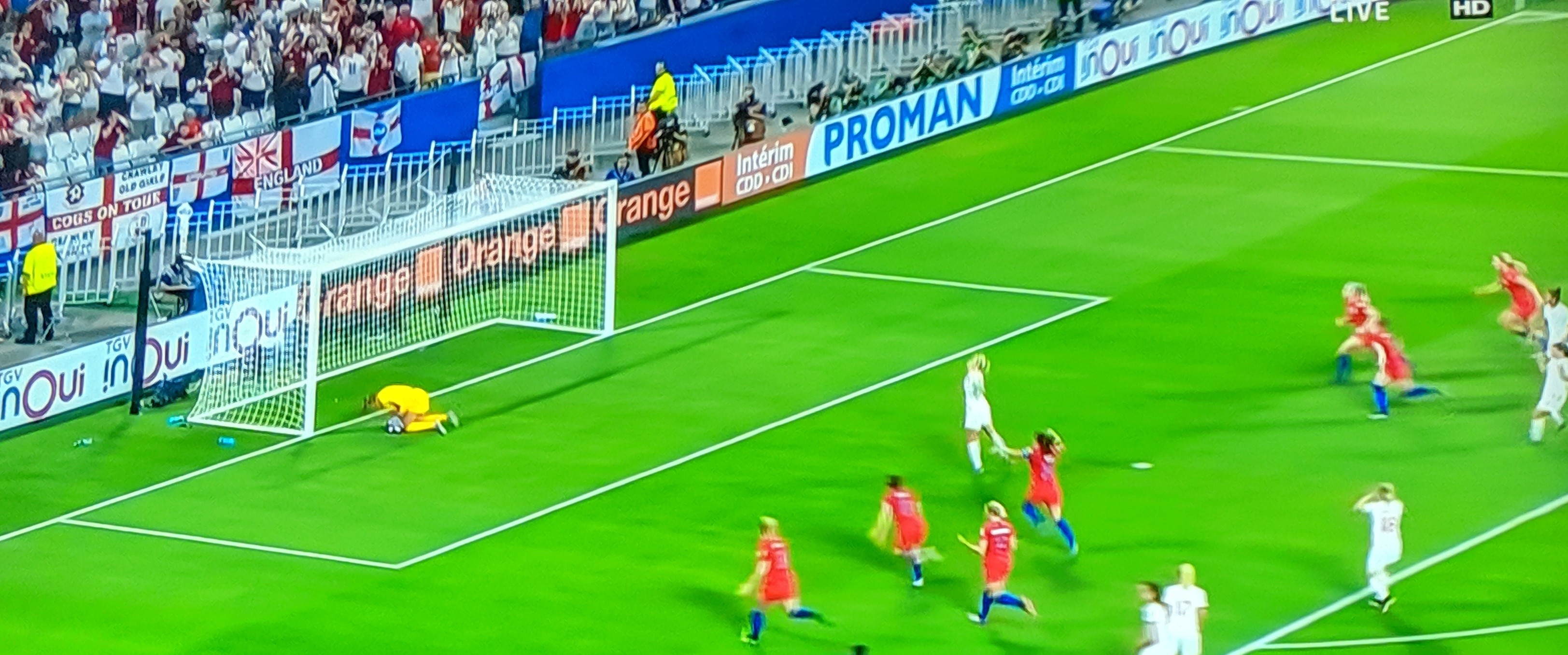 18th minute saw Ellen White equalise for the English as she tipped in a cross from Arsenal forward Mead. The ball hit the post on her right, but got nudged inside to bring them back on square 1! Game all, HAIL ALL!